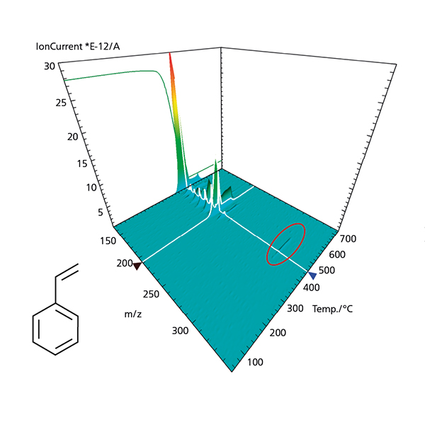 • 可以三維形式呈現(xiàn) MS 信號和熱分析數(shù)據(jù)